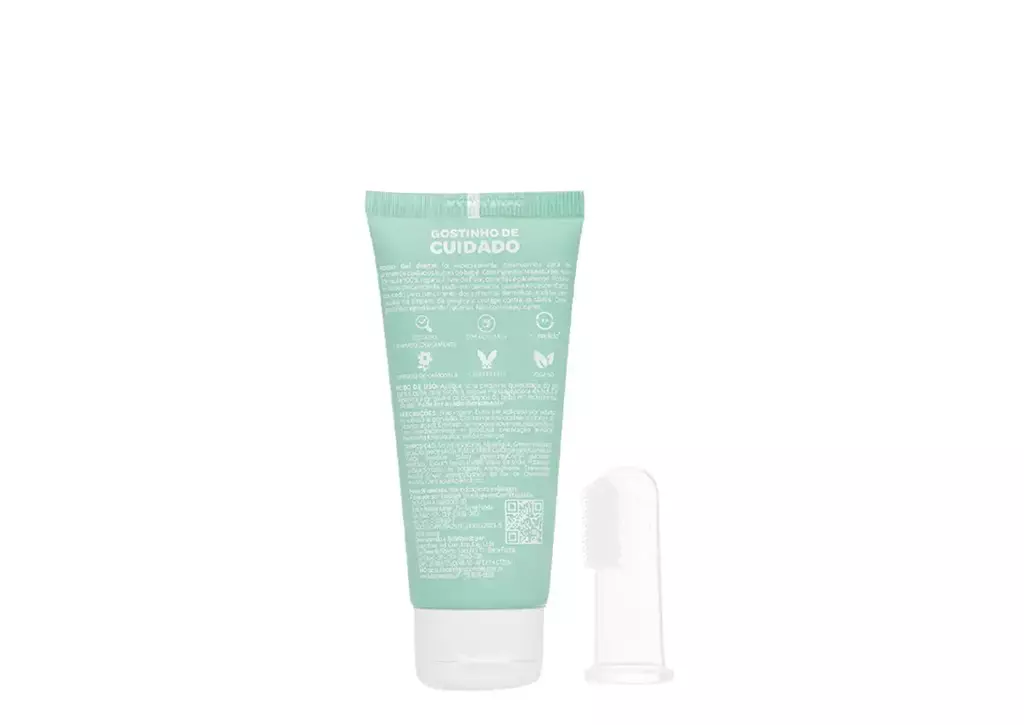 Nosso Gel Dental foi especialmente desenvolvido para os primeiros cuidados bucais do bebê. Com ingredientes naturais, sua fórmula 100% vegana é livre de flúor, corantes e parabenos. Possui extrato de camomila, poderoso calmante, que alivia o desconforto causado pelo nascimento dos primeiros dentinhos, e xilitol, que auxilia na limpeza da gengiva e protege contra as cáries. Com gostinho agradável de frutinhas. Não contém açúcares.
